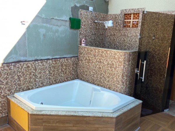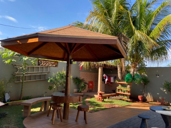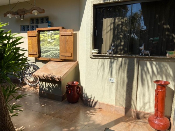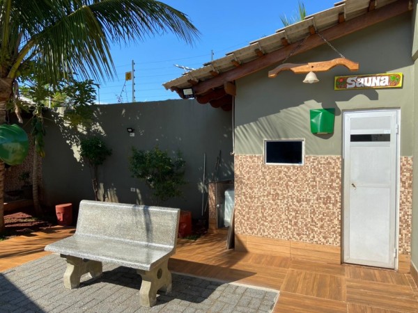 com sala integrada, churrasqueira e forno a lenha , duas semi-suítes amplas, closet, despensa, lavabo, ducha externa, Spa 3 lugares, Quiosque, Sauna úmida, Bar.