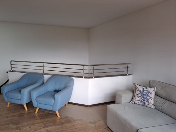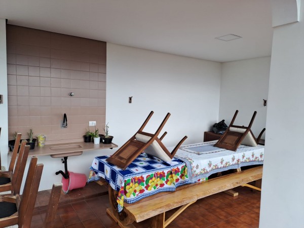 NO SEGUNDO PISO: SALA COM UMA ESPAÇOSA SACADA COM CHURRASQUEIRA E COM VISTA PARA O PARQUE DO INGÁ, UMA SUÍTE MASTER COM SACADA, E MAIS UMA SUÍTE SIMPLES.