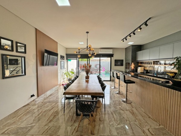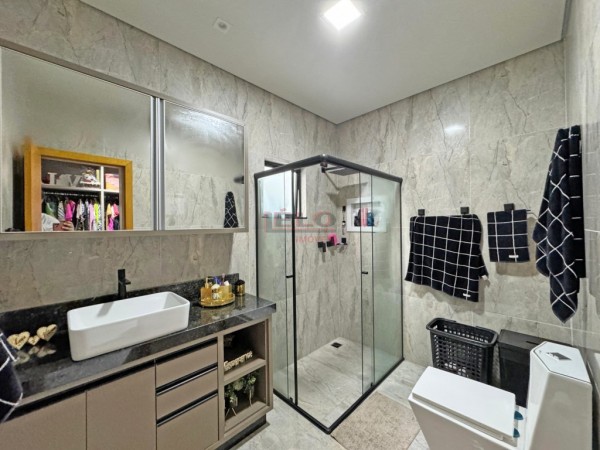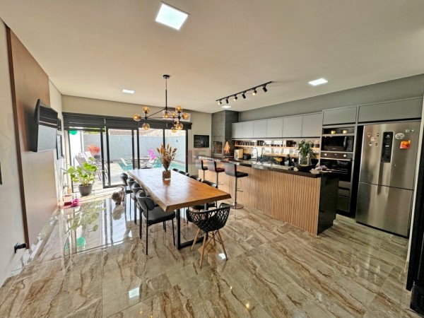 VENDE | CASA TÉRREA | CONDOMÍNIO OURO VERDE Casa recém construída em alto padrão de acabamento, localizada no Condomínio Ouro Verde. Excelente construção de 203,00 m², terreno de 300,00m², possui móveis planejados em todos ambientes, pensado nos mínimos detalhes, esse imóvel foi feito para você e sua família desfrutar de segurança e qualidade. São três quartos, um deles sendo suíte, sala ampla com pé direito duplo, cozinha gourmet com bancadas espaçosas, charrasqueira a carvão, piscina aquecida, energia fotovoltaica, garagem paralela, pisos porcelanatos de grandes formatos. Aceita como parte de pagamento, imóvel mediante a avaliação, carro ou caminhonete. Contato para visitas Gabriel Negri (44) 99983-7335.