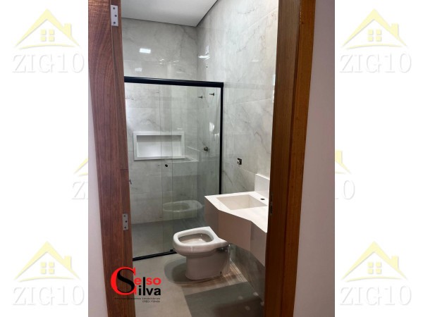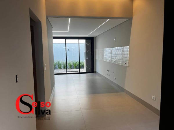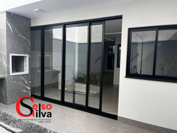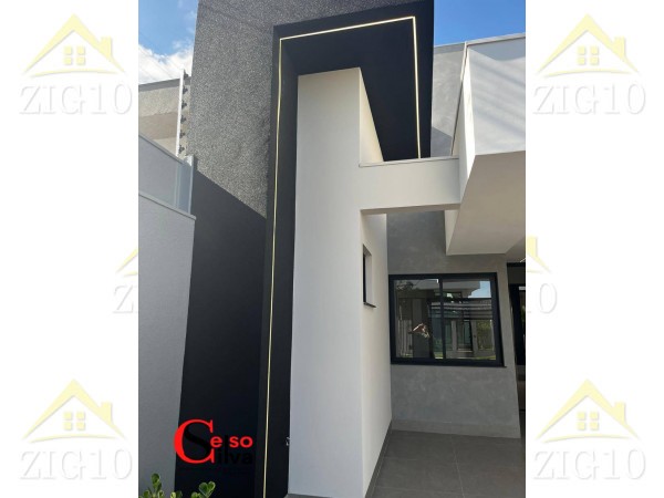 Contendo 107 metros de construção em um terreno de 168m², com uma fachada moderna pé direito alto, um interior encantador.