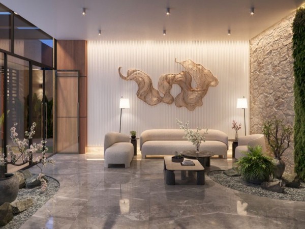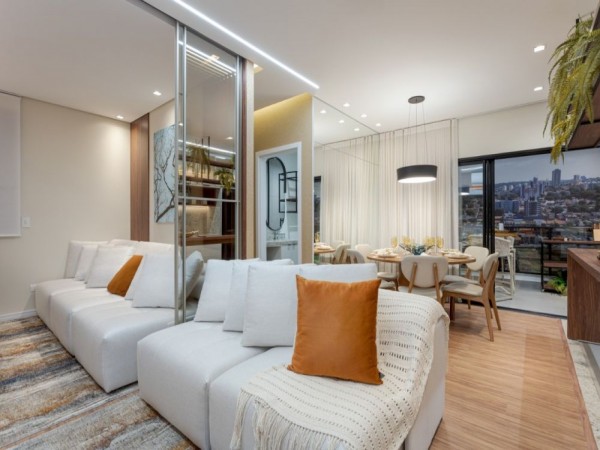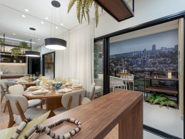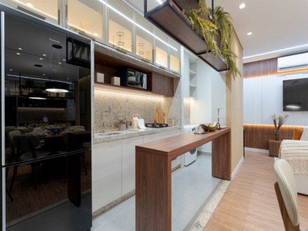 Apartamento com plantas de 2/3 quartos, sacada gourmet com churrasqueira a carvão, sala 02 ambientes, banheiro social, vaga de garagem coberta.