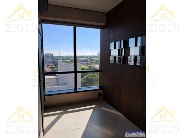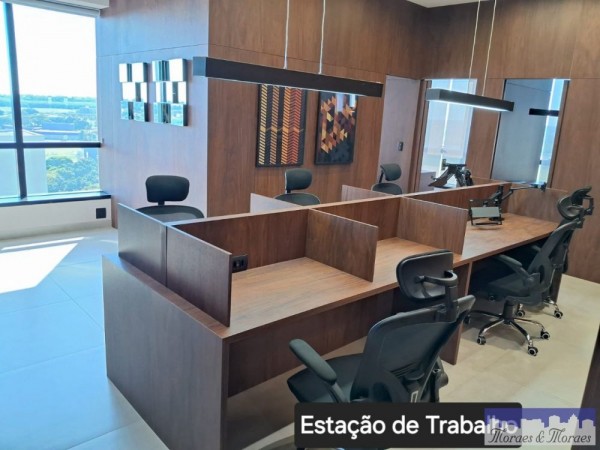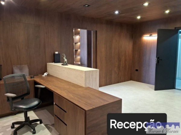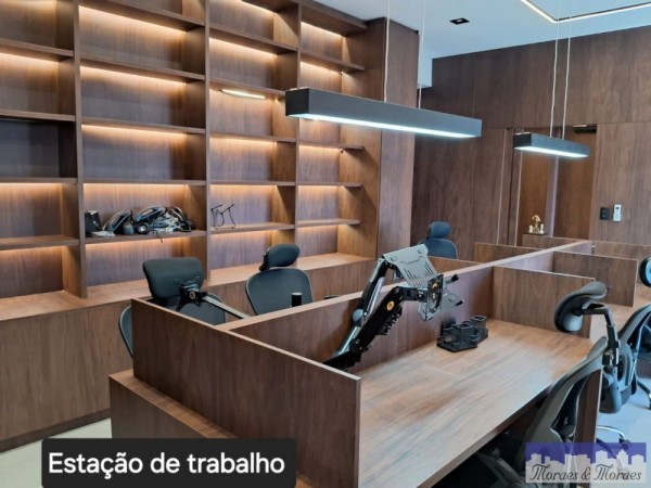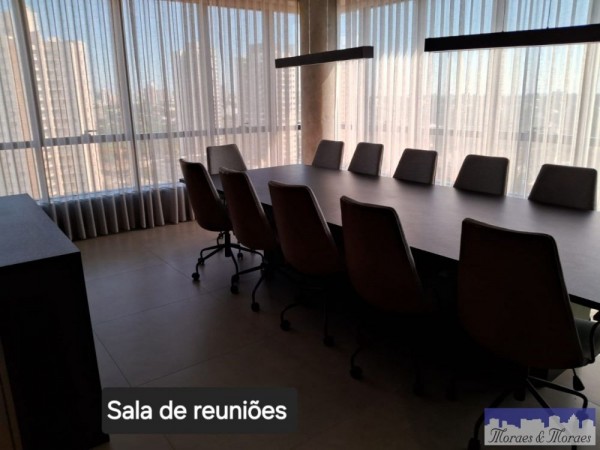 São duas salas integradas, totalizando 148m² totalmente mobiliada com requinte e bom gosto