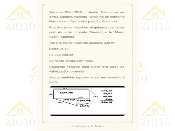 Terreno COMERCIAL Jardim Panorama, na divisa Sarandi/Maringá próximo ao contorno Norte e com facil saída para Av. Colombo