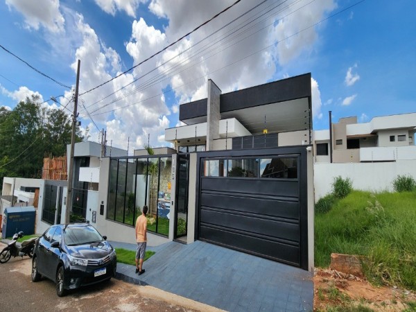 Sobrado de esquina com 420,71m² de construção, sendo uma suíte máster com banheira, uma suíte com closet, uma suíte simples, ampla sala integrada com a cozinha e espaço gourmet, escritório com banheiro, lavabo, lavanderia, estendal, piscina e garagem coberta para 3 veículos estacionado paralelos.