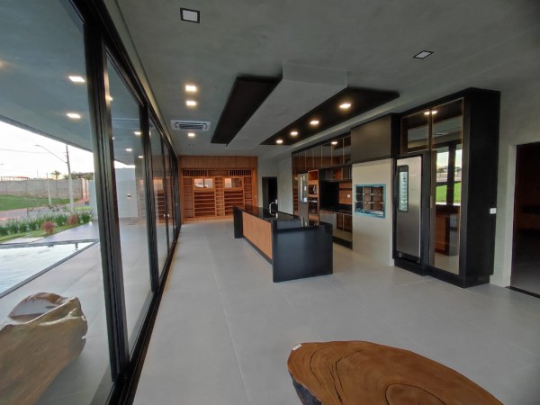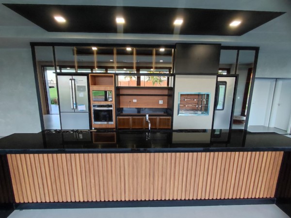 Cozinha Americana e Sala de Jantar, com vista para Piscina.