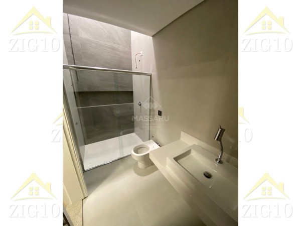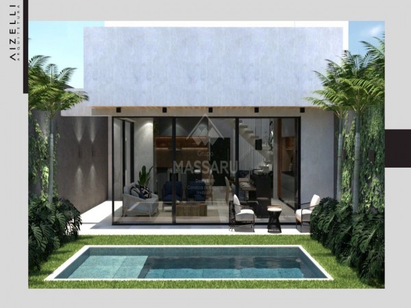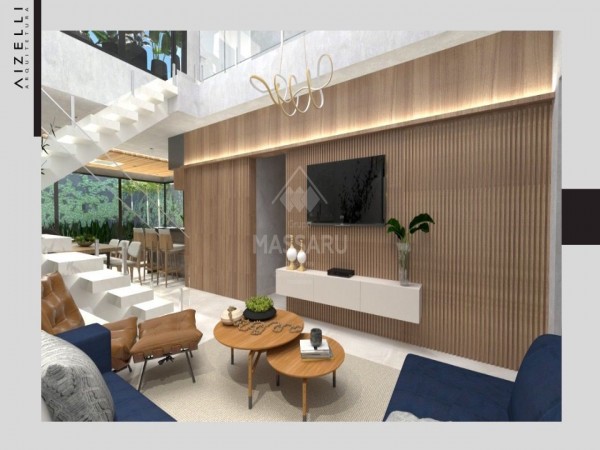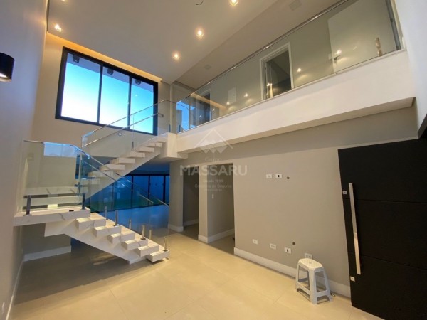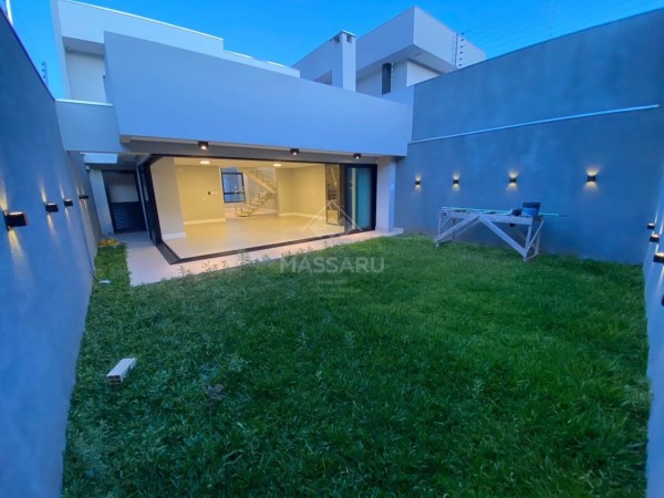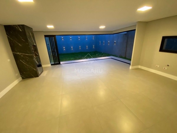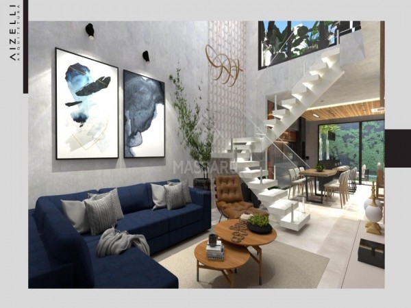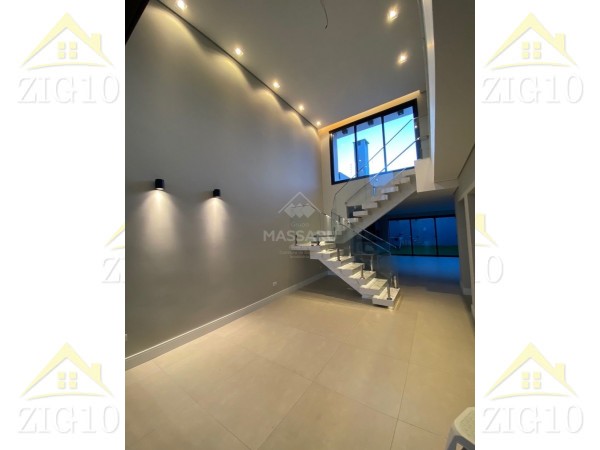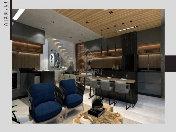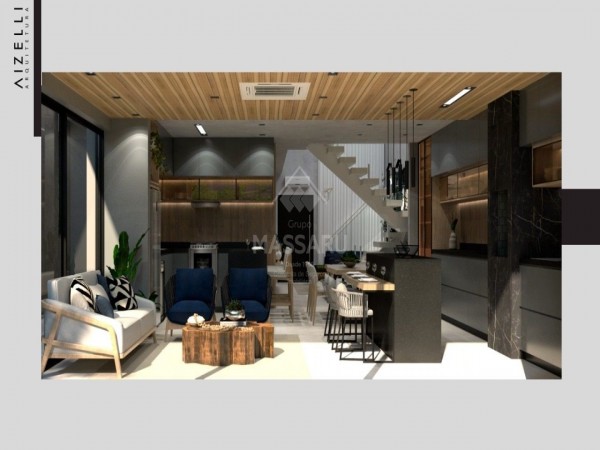 Residência conta com 03 quartos (sendo 01 suíte), sala ampla com pé direito alto (5,5 metros), cozinha gourmet com churrasqueira, área de serviço, 02 banheiros sociais e banheiro suíte. Possui duas vagas de garagem.