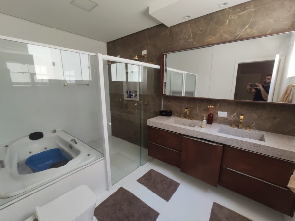 1 suíte com closet , banheiro duplo com metais dourados e banheira