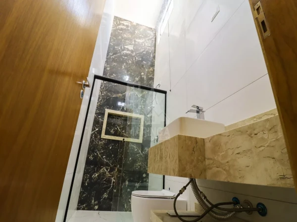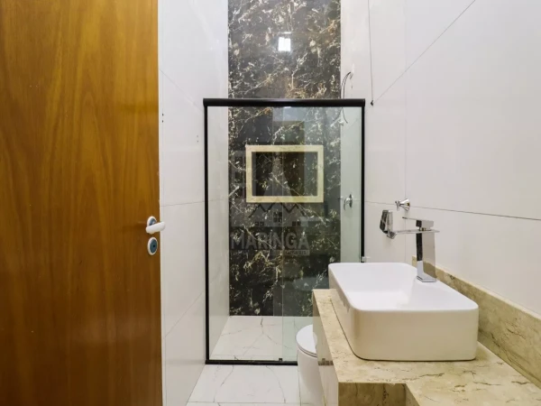 Detalhes: - Casa toda em porcelanato - Molduras em gesso em todos os ambientes - Rebaixamento e gesso com sancas na sala, cozinha e área gourmet - Janelas em Blindex fumê - Acabamento em granito nas portas e janelas - Iluminação em LED, spots, arandelas, fitas em LED e pendentes - Pontos de ar condicionado na sala e quartos - Pontos para instalação de TV na sala, quartos e área gourmet - Portão eletrônico basculante - Portão social - Tubulação de gás - Cerca elétrica Big Haste com alarme - Interfone - Água quente nas torneiras e Chuveiros - Boiler de 300L - Porta em vidro temperado no corredor lateral - Torneiras monocomando