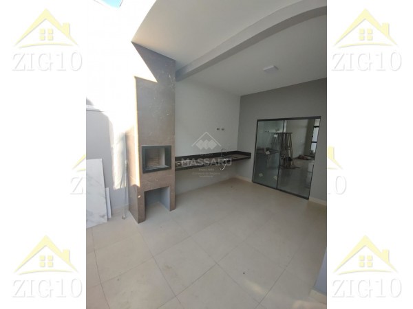 Casa com 03 quartos (sendo 01 suíte), sala conjugada com cozinha, área de serviço coberta e banheiro social. Espaço gourmet com churrasqueira. Possui duas vagas de garagem.