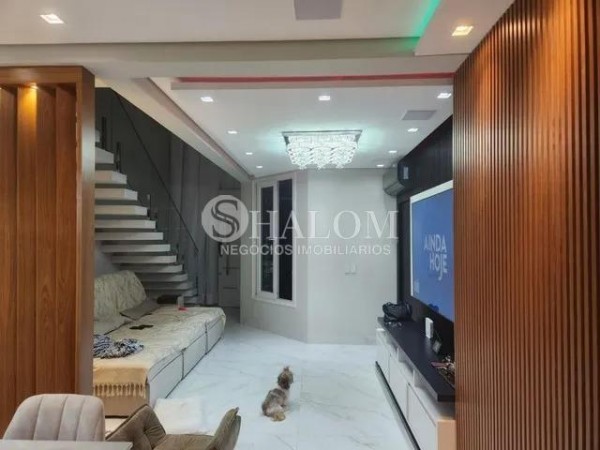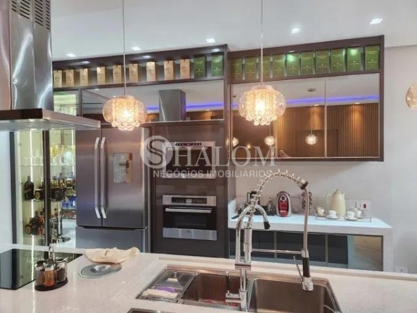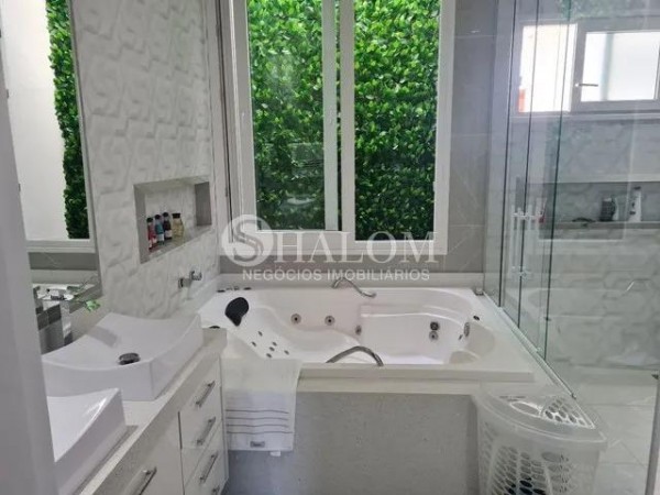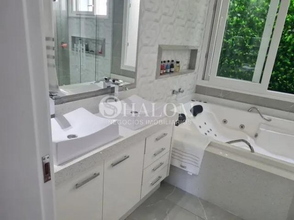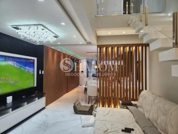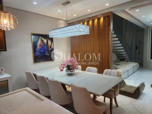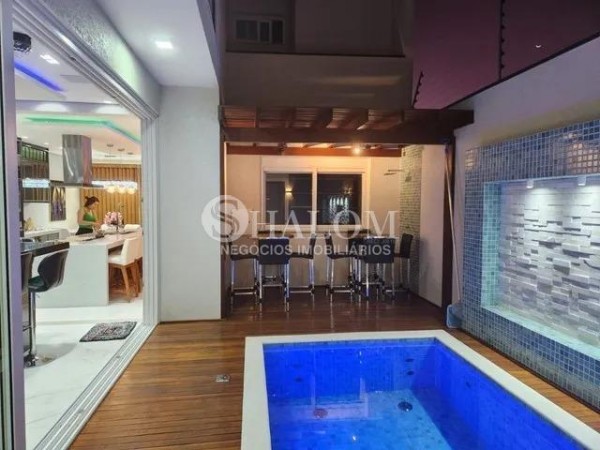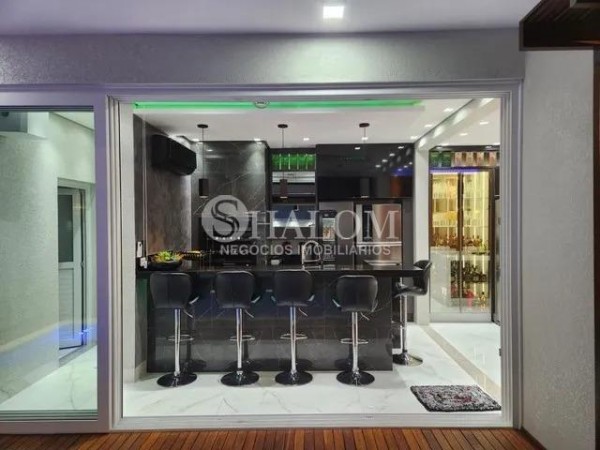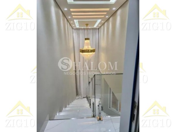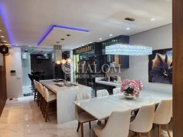 O sobrado possui acabamentos em porcelanato, pé direito duplo e armários planejados no closet e despensa. Conta ainda com água, energia solar, ar-condicionado em todos os ambientes e sistema de alarme completo.