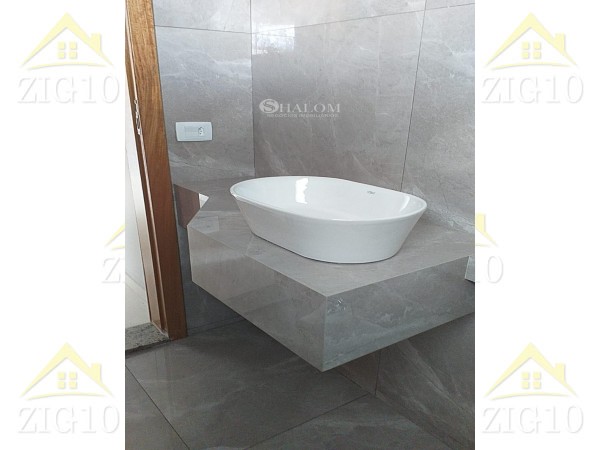 Piso em porcelanato e armários.
