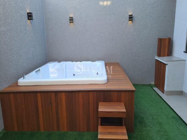 Com acabamento de alto padrão e toda a iluminação em LED, a casa também conta com aquecimento solar, SPA para 6 pessoas com hidromassagem e aquecimento, churrasqueira, varanda gourmet e solarium.
