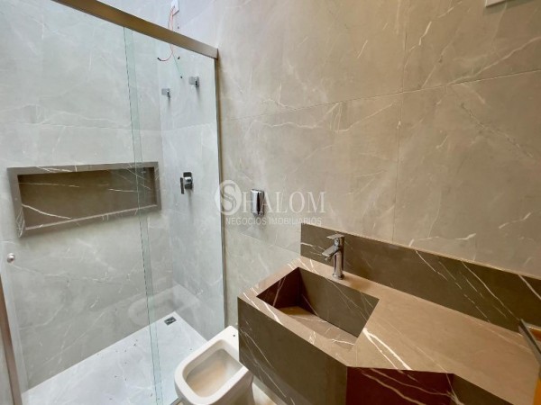 Excelente casa com 117.63m² de área construída, lavabo e lavanderia. Possui 3 dormitórios, sendo todos suítes, com pé direito duplo. Conta com vaga de garagem fixa para 2 carros.