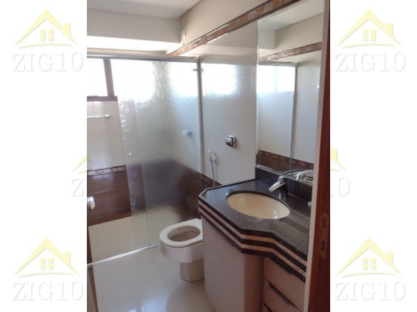 Banheiro social e suíte possuem box e armário