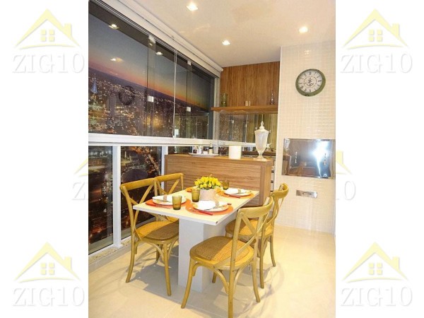 São 121m², sendo 3 Suítes, Sala integrada com Sacada Goumet, medidores individuais de água, energia e gás. Piso laminado nos quartos. Acesso social com Biometria.